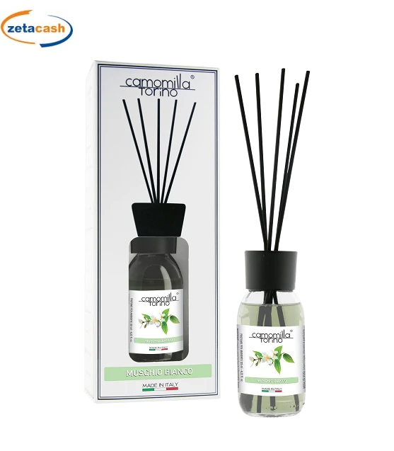 Diffusore per ambiente con bastoncini in legno. Fraganza muschio biancoi.