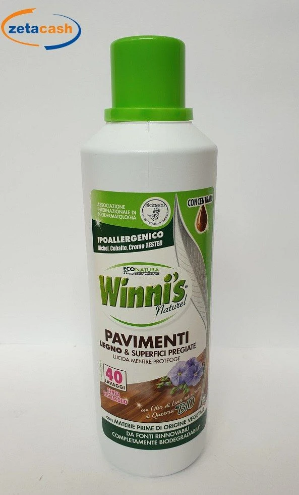 Winni’s concentrato per pavimenti in legno e superfici pregiate. 40 Lavaggi 1 LT, senza risciacquo con olio di lino ed estratto di quercia bio.